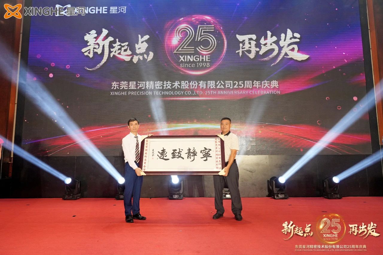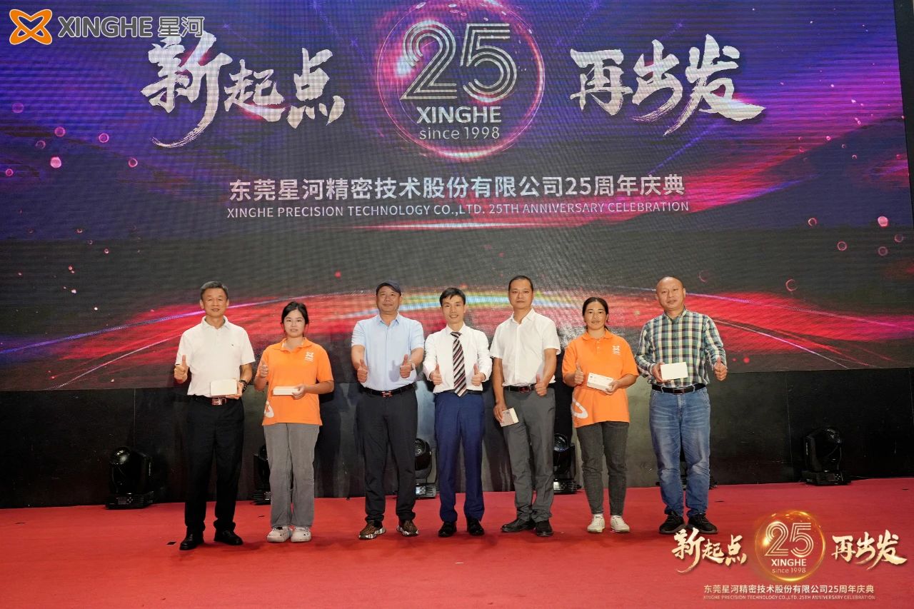 Starting from a new starting point, then starting again. On October 18th, the 25th anniversary celebration of Dongguan Xinghe Precision Technology Co., Ltd. was successfully held at the Pullman Hotel, Junyuan, Chang'an, Dongguan. More than 600 people, including leaders of Shangsha Community in Hengnan County and Chang'an Town, clients, partners, leaders of chambers of commerce associations and representatives of entrepreneurs from all over the country, special guests, news media friends, and all employees of Xinghe Company, gathered together to participate in the grand event and witness Xinghe's 25 year glorious journey of striving forward and achieving stability and success.
